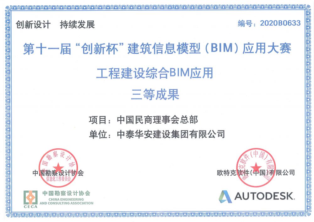第十一届“创新杯”建筑信息模型(BIM) 应用大赛三等奖