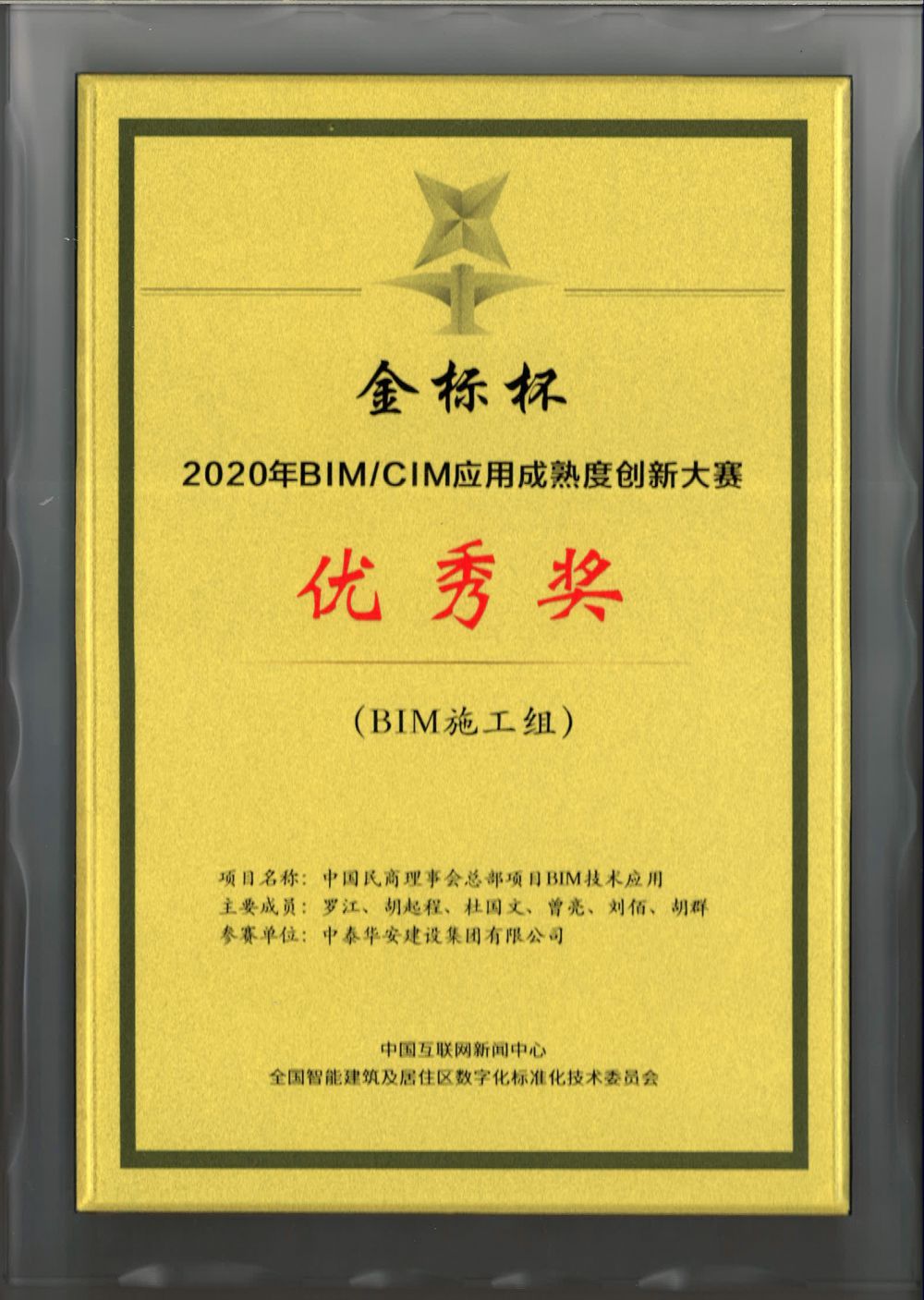 >2020年金标杯BIM/CIM应用成熟度创新大赛Bim施工组优秀奖