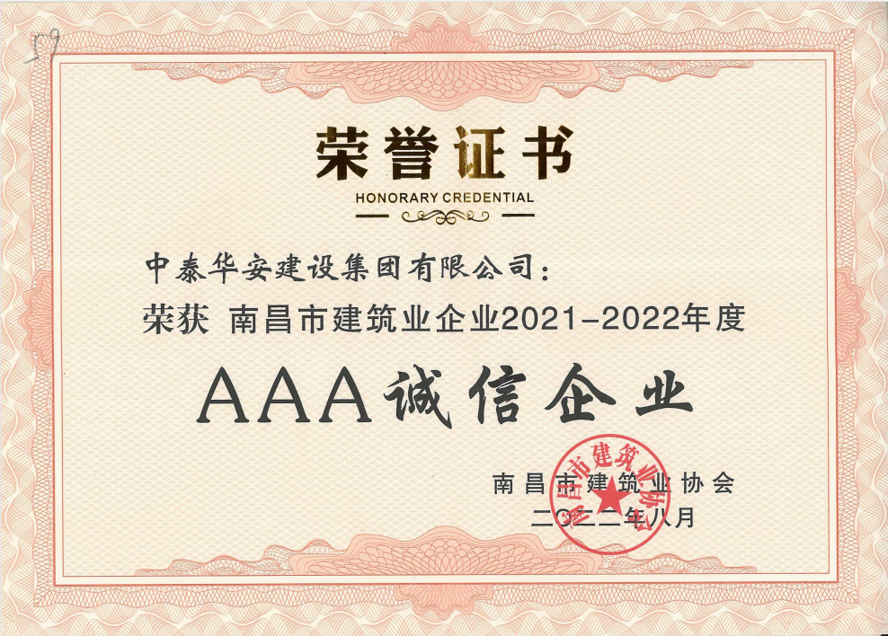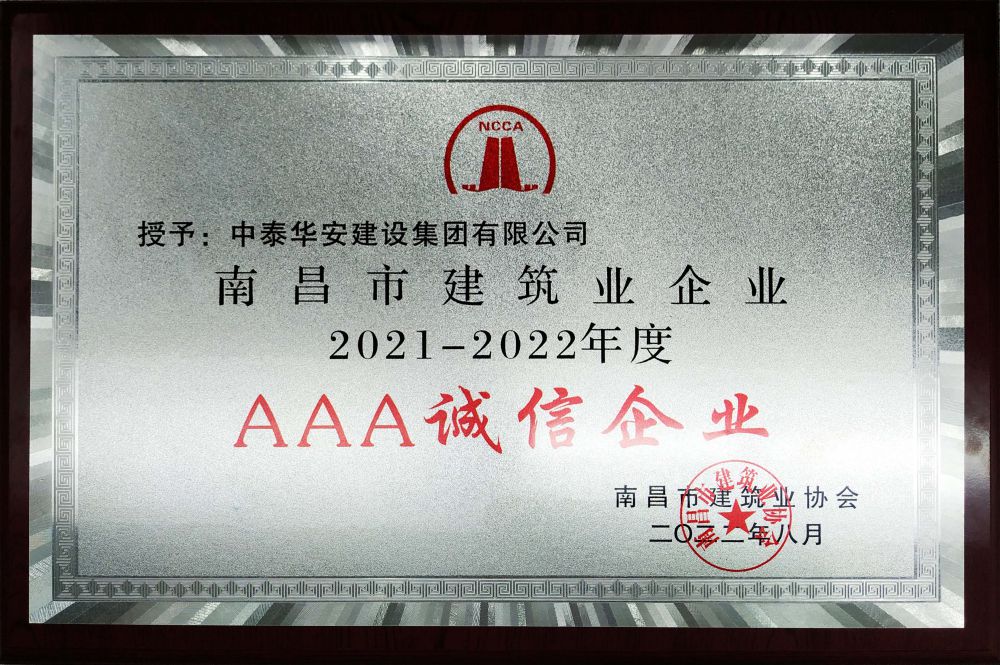 >南昌市建筑业企业AAA诚信企业