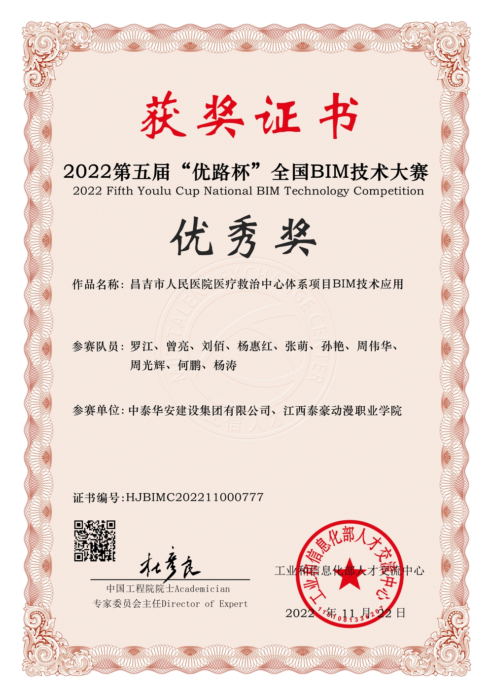 >2022年第五届“优路杯”全国BIM技术大赛优秀奖