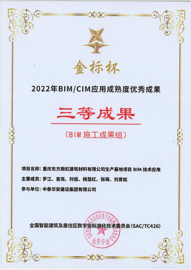 2022年BIM/CIM应用成熟度优秀成果三等成果奖