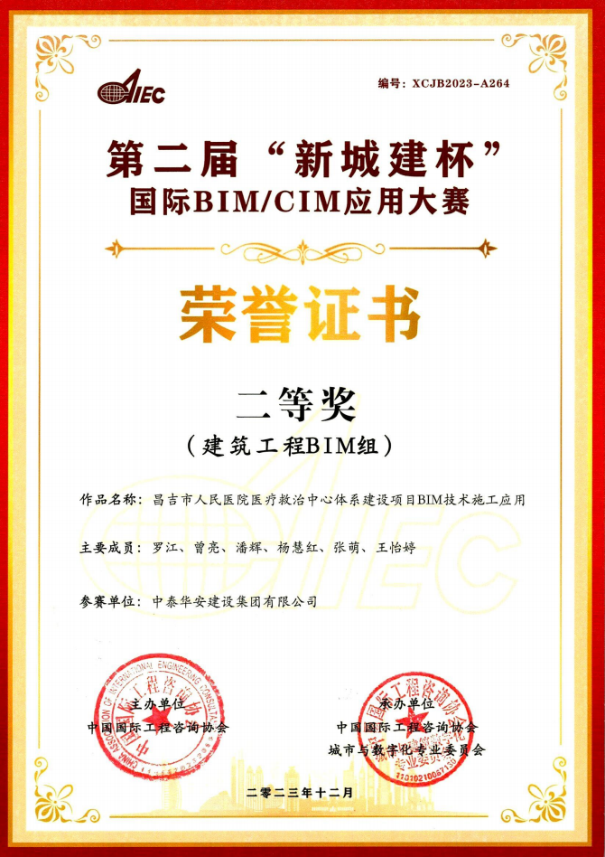 第二届“新城建杯”国际BIM/CIM应用大赛二等奖