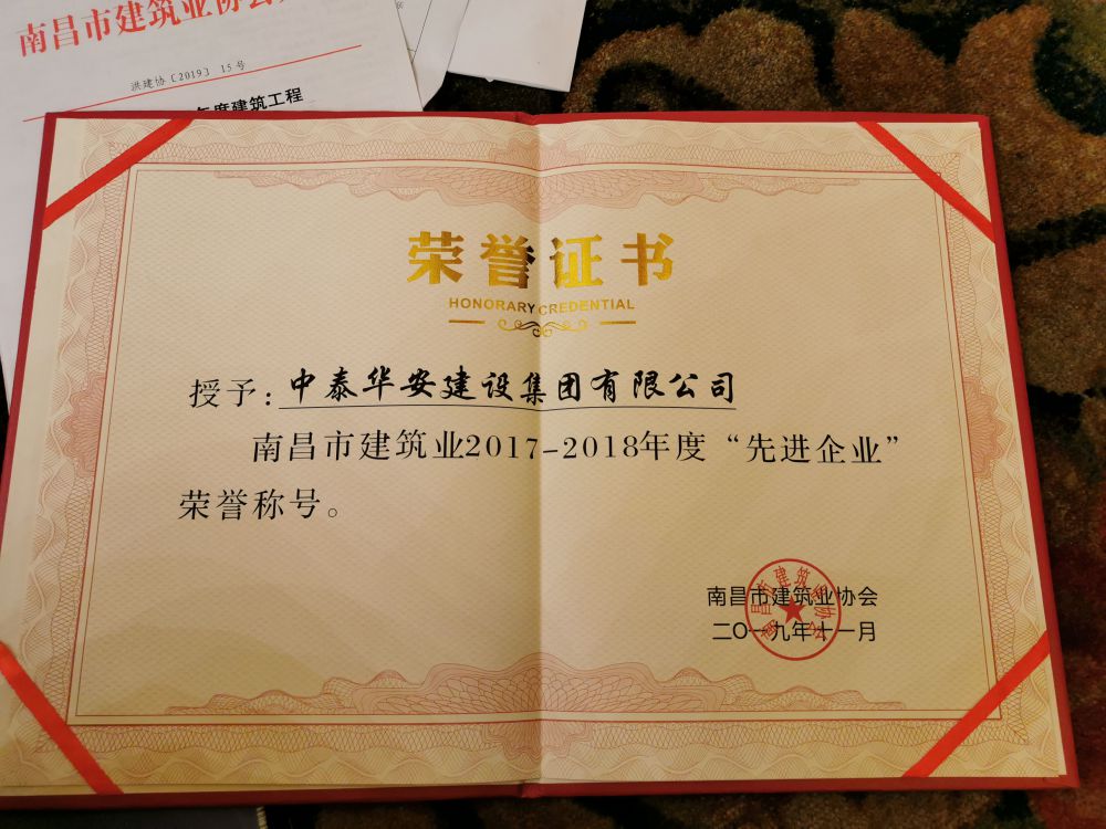>喜报,我司再次荣获南昌市建筑业先进企业荣誉称号