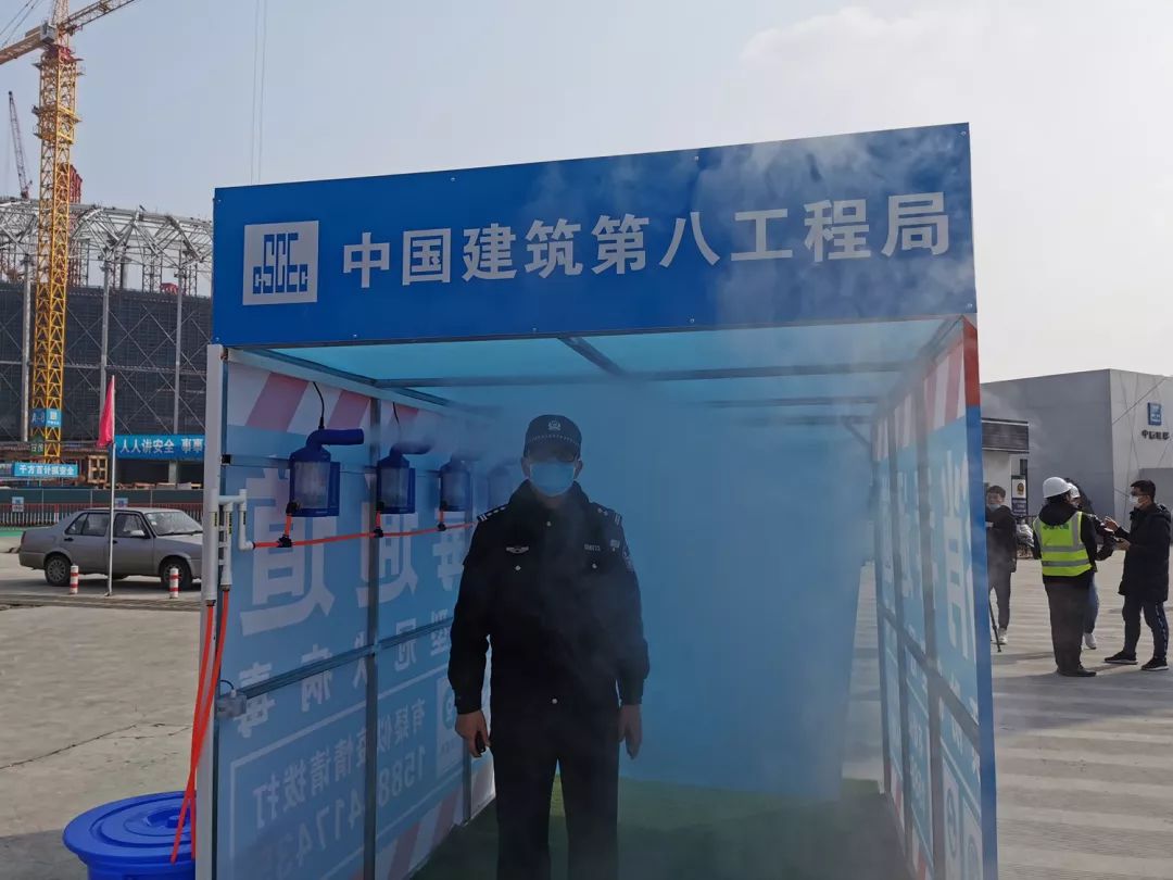 办公区、生活区、施工区打围封闭,强化门禁系统与实名制管理,人员出入口设置消毒通道,所有人员入场必须经过喷雾消毒处理。