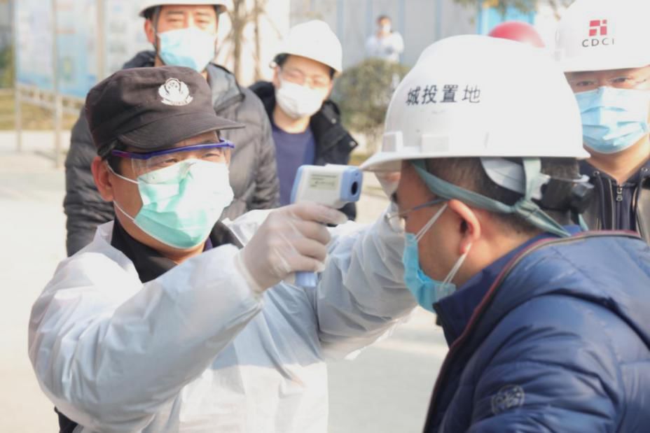 在进出场大门、办公区、工人生活区、食堂出入口等处设置体温测试点,安排专人对所有进出人员进行测温监管。