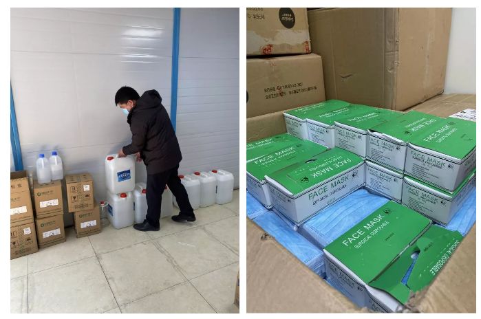 配备两周以上用量的口罩、医用酒精、消毒液、一次性手套等消毒防护用品,发放给管理人员及工人使用。