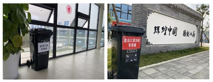 办公区、生活区设置消毒区、洗手区;配备专用废旧口罩、手套回收箱,及时进行处理。