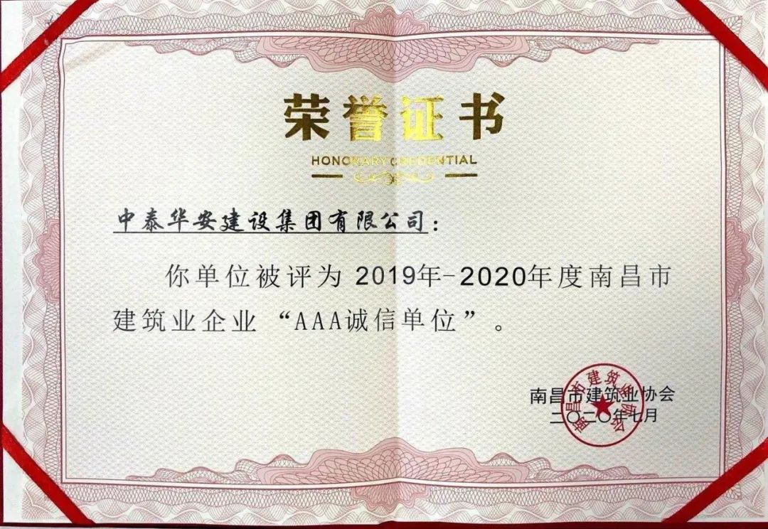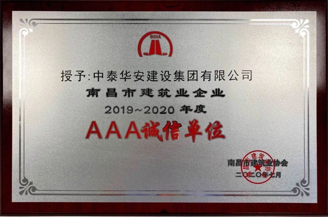 我司在南昌市建筑企业诚信单位评选中脱颖而出,被评为“AAA诚信单位”,这彰显了爱体育(中国)在企业管理创新、企业诚信建设等方面取得的成绩获得了建筑行业及企业同仁的高度认可。
