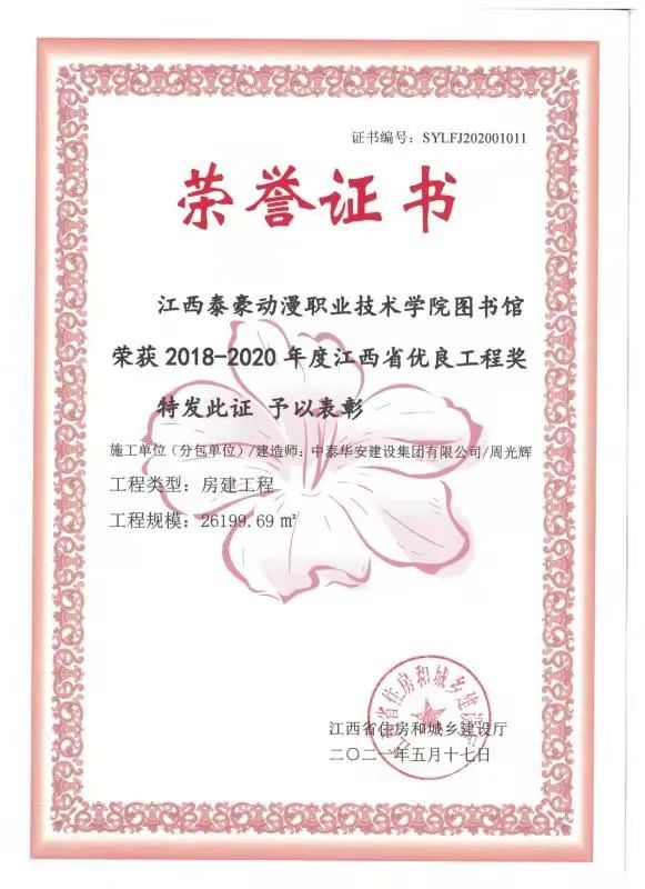>喜讯!由我司承建的江西泰豪动漫职业技术学院图书馆荣获2018-2020年度江西省优良工程奖