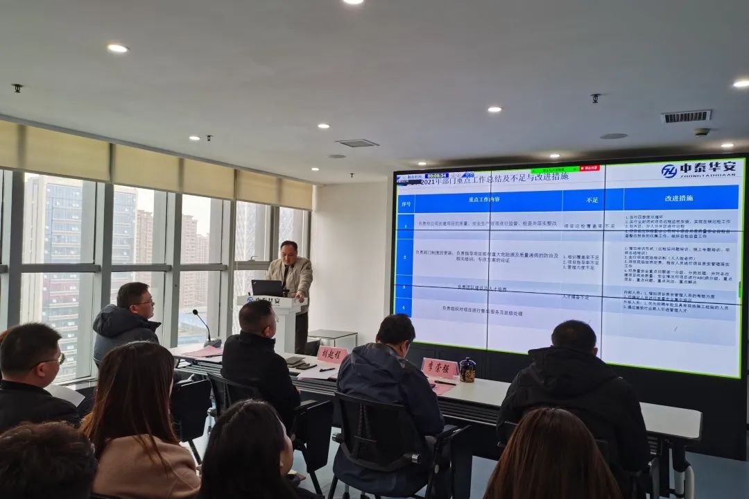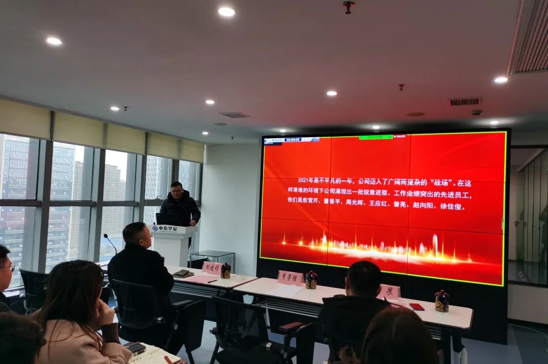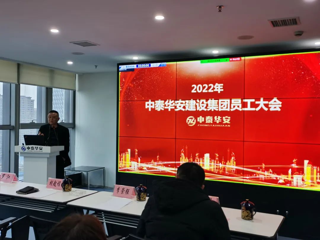 2022年2月9日下午,中泰华安建设集团2022年员工大会暨表彰大会在公司大会议室及云会议的方式顺利召开。公司管理团队成员、各部门/项目部负责人及在职员工等共100余人参加了会议。