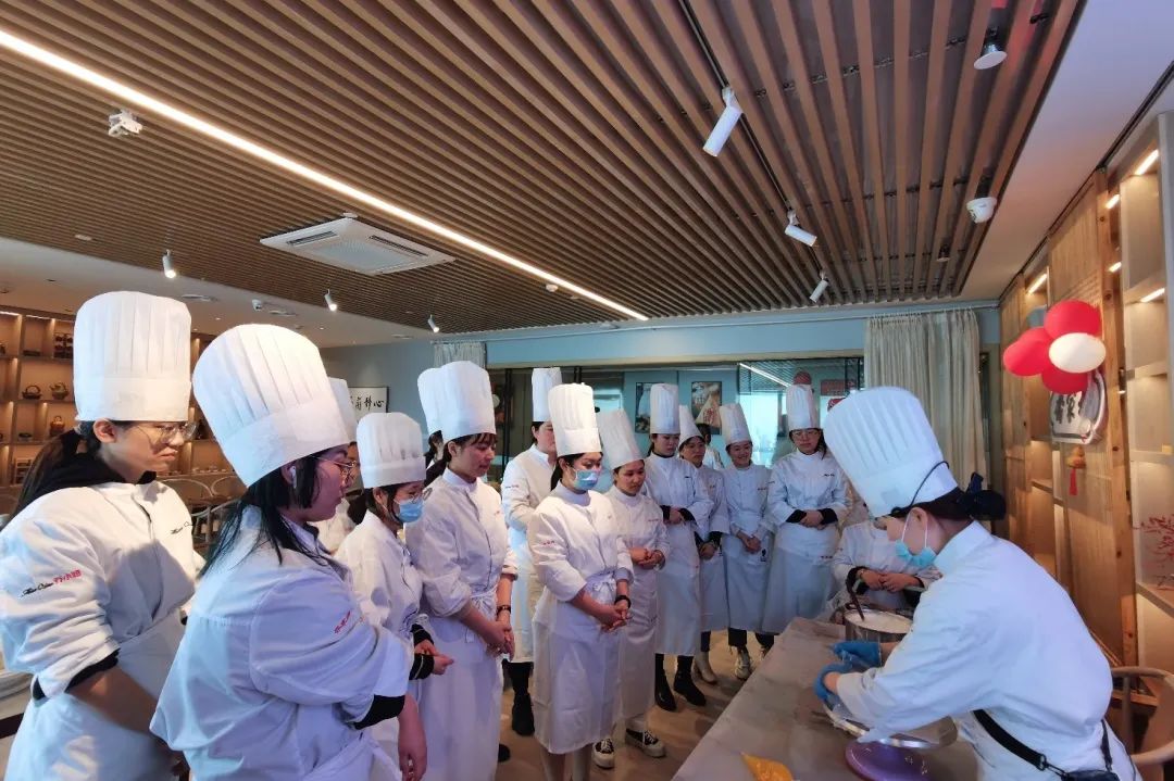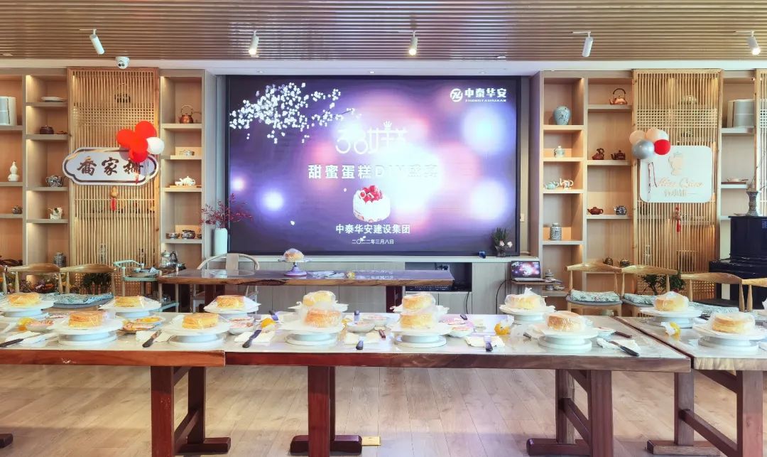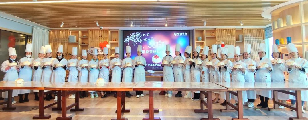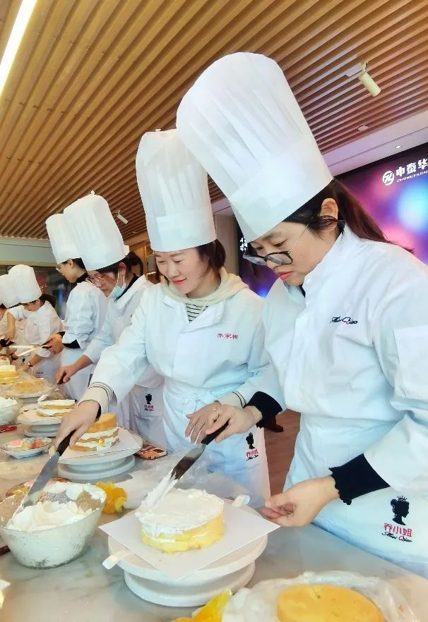 精心设计的女神节活动背景,摆放整齐的各类烘焙工具和原材料,整个活动现场温馨而甜蜜。活动开始,烘焙老师为大家详细讲解了烘焙工具的使用、烘焙食材制作流程,并熟练地进行了操作演示。随后,已全部换上烘焙工作衣的中泰女神们秒变甜点大师,从夹馅、抹奶油、裱花,开始了蛋糕DIY。
