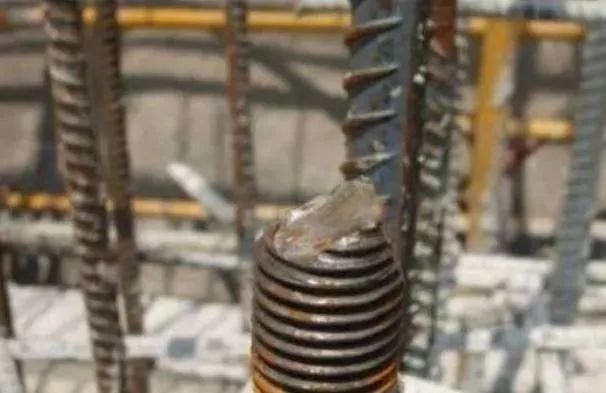 1、钢筋端部直螺纹丝扣加工好以后,没有对丝扣进行有效保护。