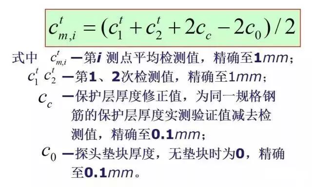 钢筋的混凝土保护层厚度平均检测值应按下式计算: