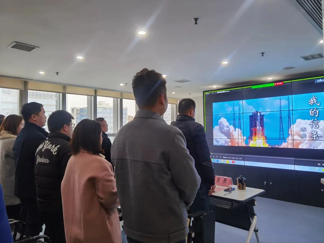 围绕公司愿景“成为智能建造优质服务商”,会议开始,全体员工起立默诵《我的信条》。