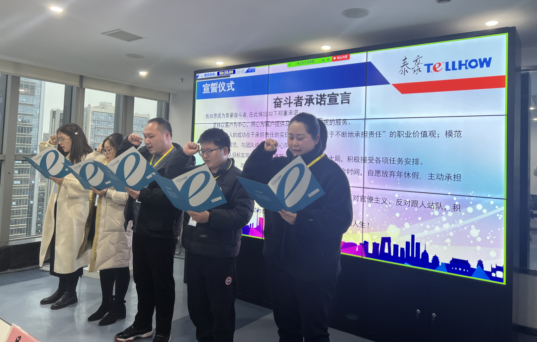公司总经理胡起程为奋斗者授牌,奋斗者们在全体员工面前宣誓,铮铮誓言、掷地有声。