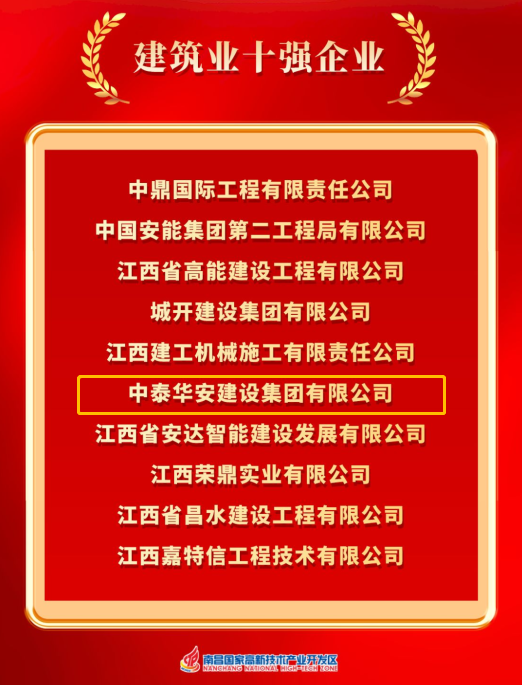 近日,南昌市高新区2023年度企业家峰会成功举办。市委常委、区党工委书记王万征参加峰会并讲话。省科技厅副厅长陈金桥,省发改委二级巡视员樊千根致辞。会上,南昌高新区为2022年度各行各业贡献突出的企业和优秀个人进行了表彰。我司荣获“建筑业十强企业”称号。