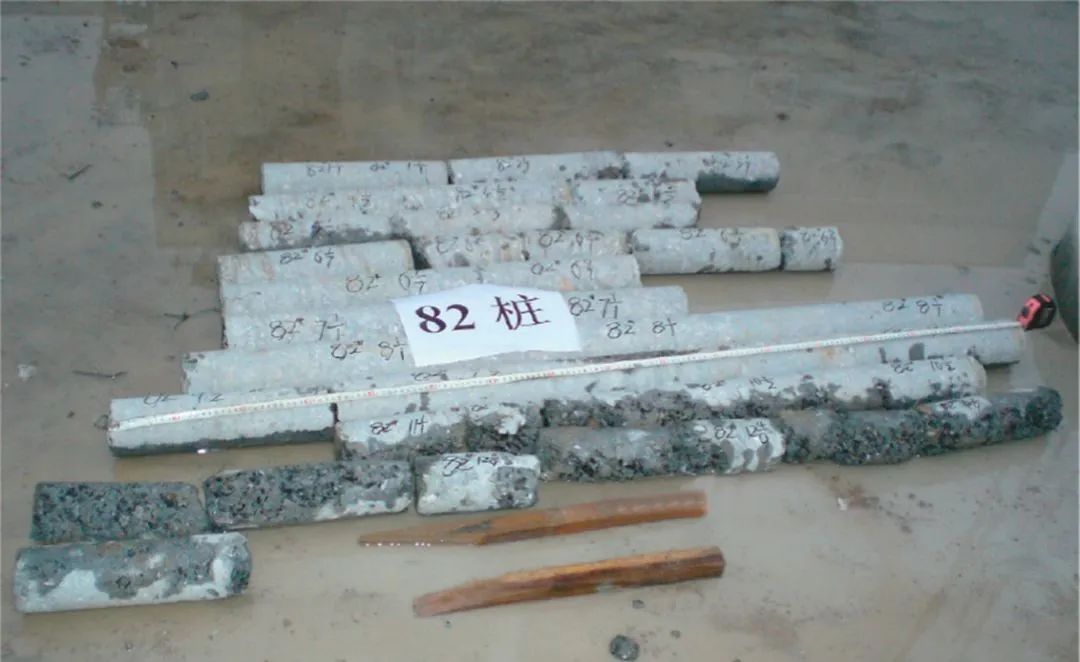 钻孔取芯法主要是采用钻孔机(一般带10mm内径)对桩基进行抽芯取样,根据取出芯样,可对桩基的长度、混凝土强度、桩底沉渣厚度、持力层情况等作清楚的判断。