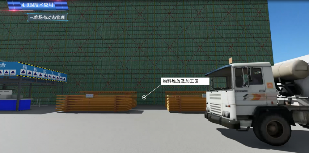 项目施工前,利用BIM技术结合施工现场的实际情况,进行行车路线、物料堆放及施工电梯位置等优化,从而达到减少二次搬运,保障路线畅通的目的。